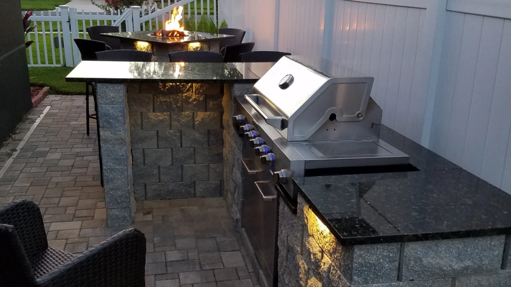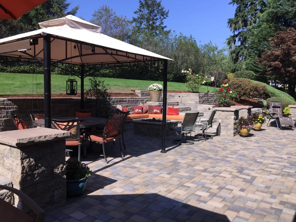 Allan Block features create inviting spaces for outdoor entertaining, seamlessly connecting patios, seating areas, and retaining walls to provide functional, stylish, and comfortable gathering areas.