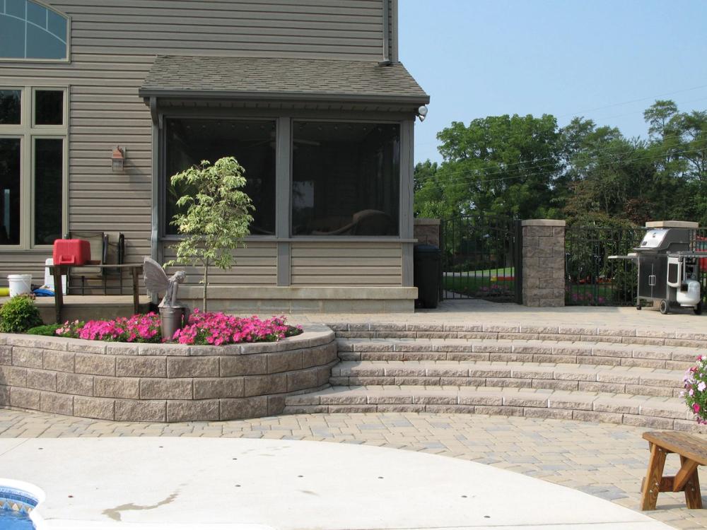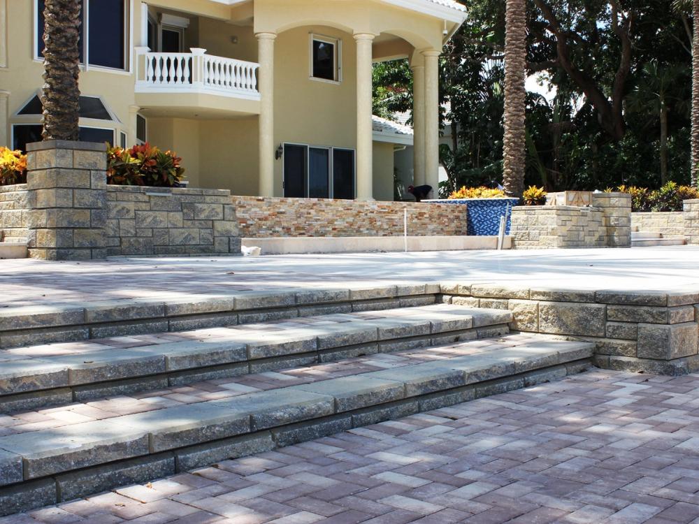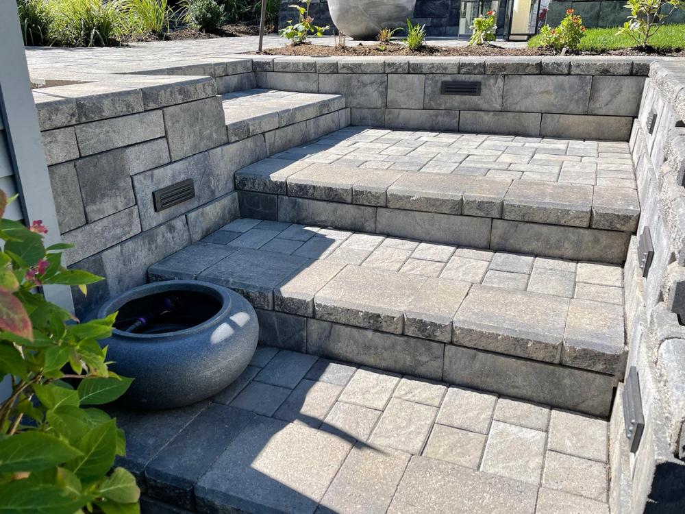 Allan Block stairs provide a clean and durable connection between patios and surrounding areas, making elevation changes safe and visually seamless.