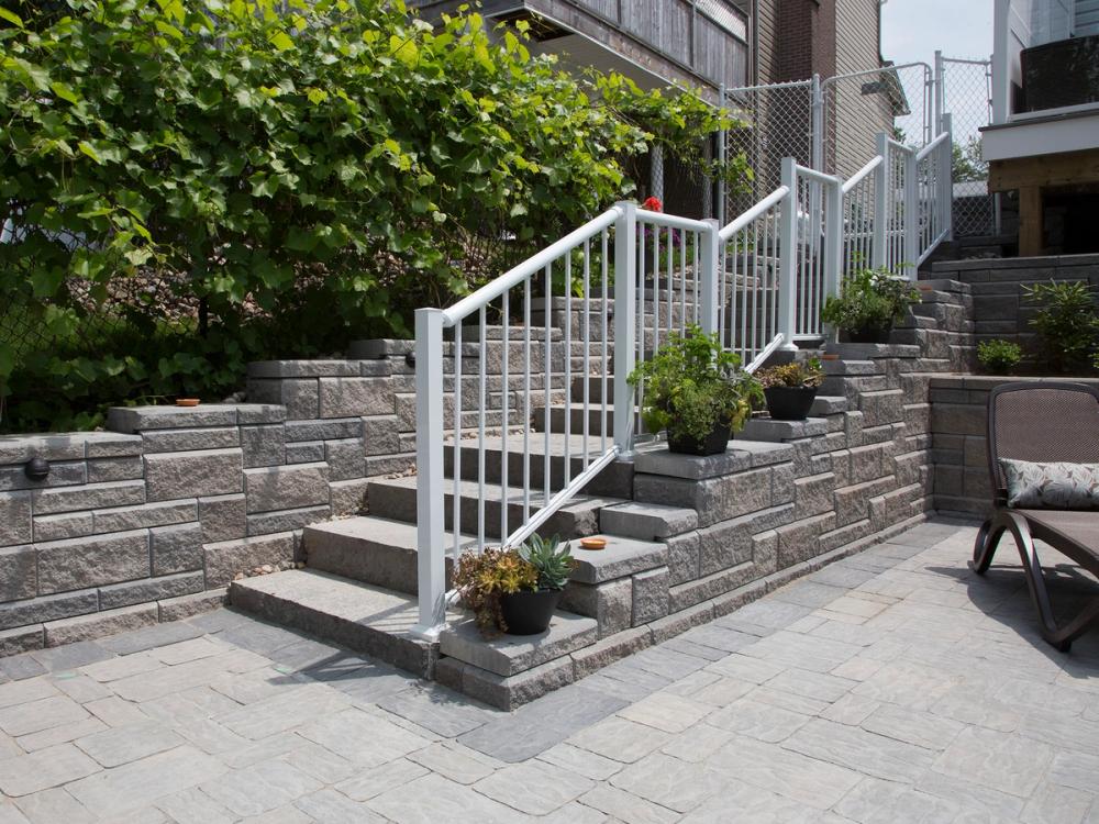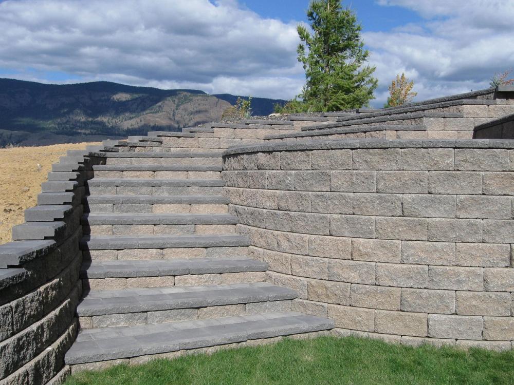 Allan Block stairs can be integrated directly into retaining walls, providing functional access while maintaining the structural and visual continuity of the wall system.