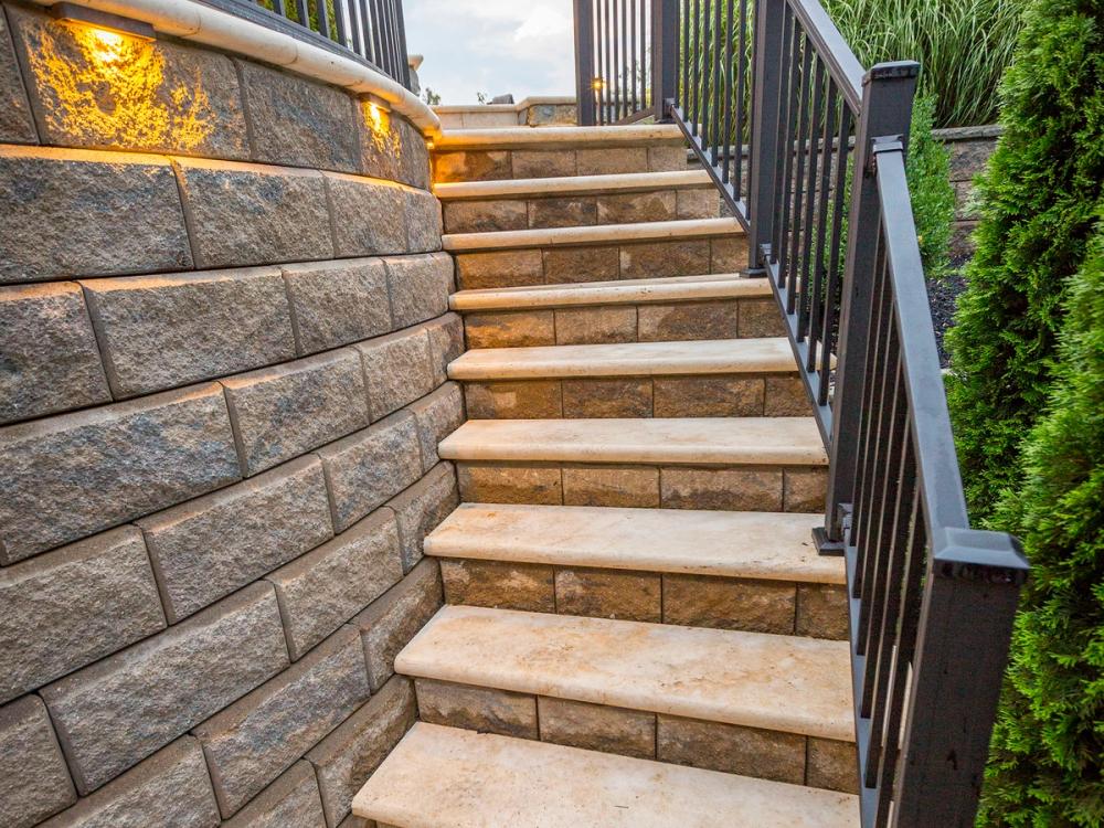 Integrated lighting within Allan Block stairs improves safety and visibility while adding a warm, inviting accent to outdoor spaces.