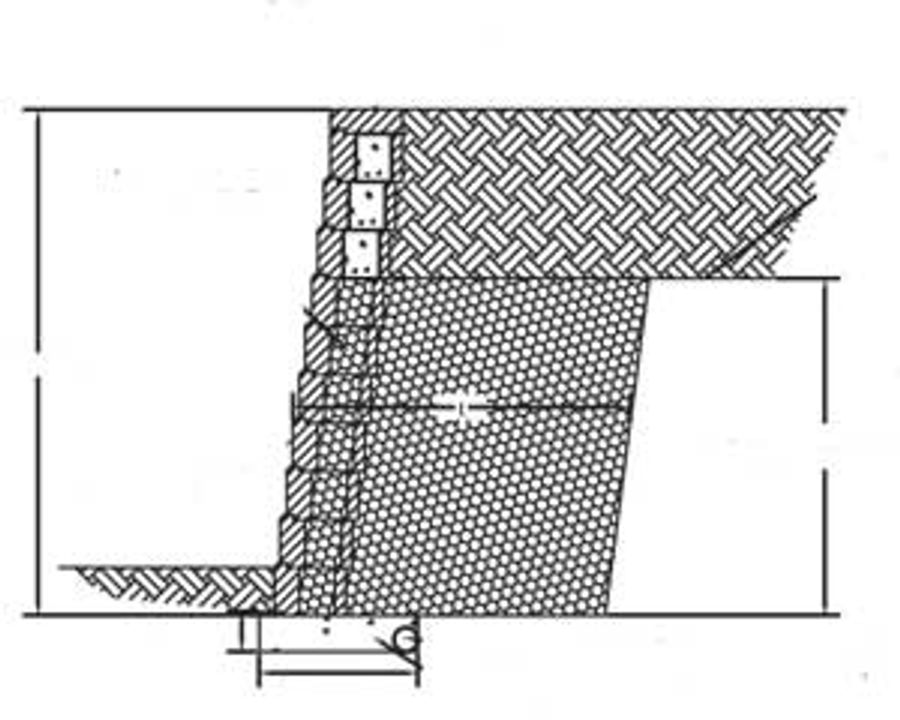 Typical geogrid-reinforced walls require excavation depths equal to 60 percent or more of the wall height. In contrast, No-Fines reinforced retaining walls generally require excavation of only 30 to 40 percent of the wall height under similar site conditions.