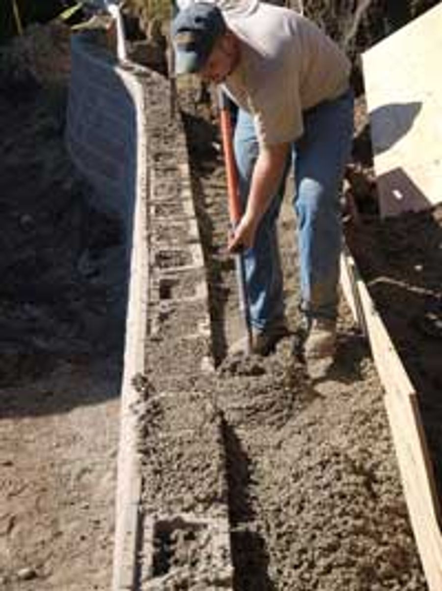 In total, approximately 40 cubic yards (30.6 cubic meters) of No-Fines concrete were placed within the retaining wall structure.