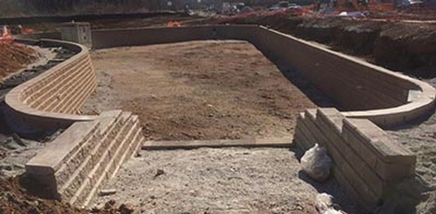 For this project, the Center owners worked with USI Consulting Engineers to design the Allan Block walls. USI Consulting Engineers found Allan Block Classic blocks to be an efficient and effective solution to provide a perimeter to this bio-retention basin and create as much usable space as possible while providing the quality aesthetics that the medical community demanded. They knew that the hollow core of the Allan Block unit, in conjunction with well-graded wall rock, could provide a perfect structural solution to water applications such as this one and increase the water storage volume of the basin.