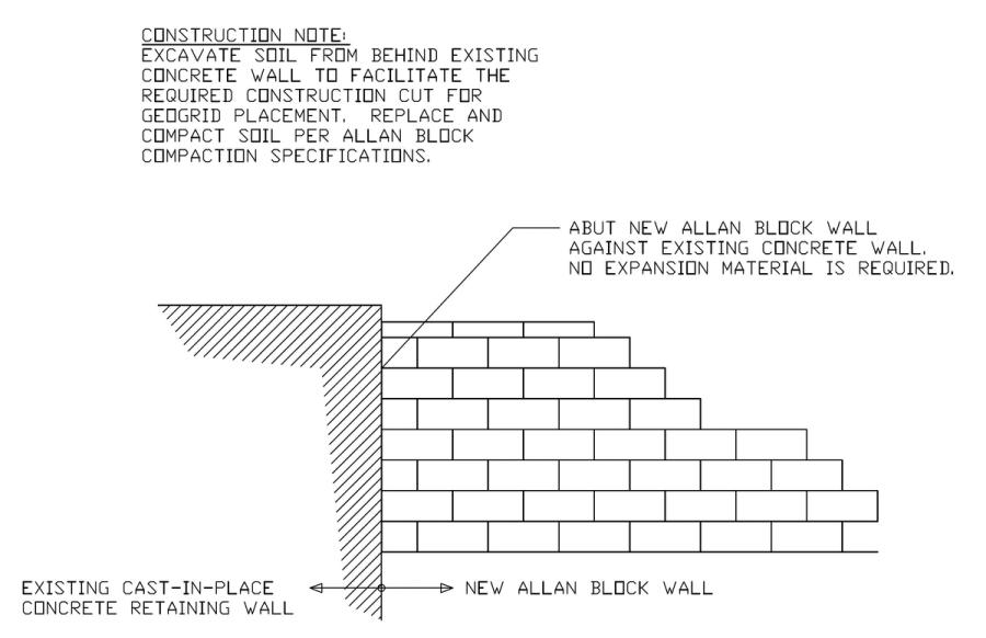 If you have a SRW that is to adjoin with an existing structure, give the Allan Block engineering department a call (800-899-5309 x 3) or email engineering@allanblock.com for assistance.