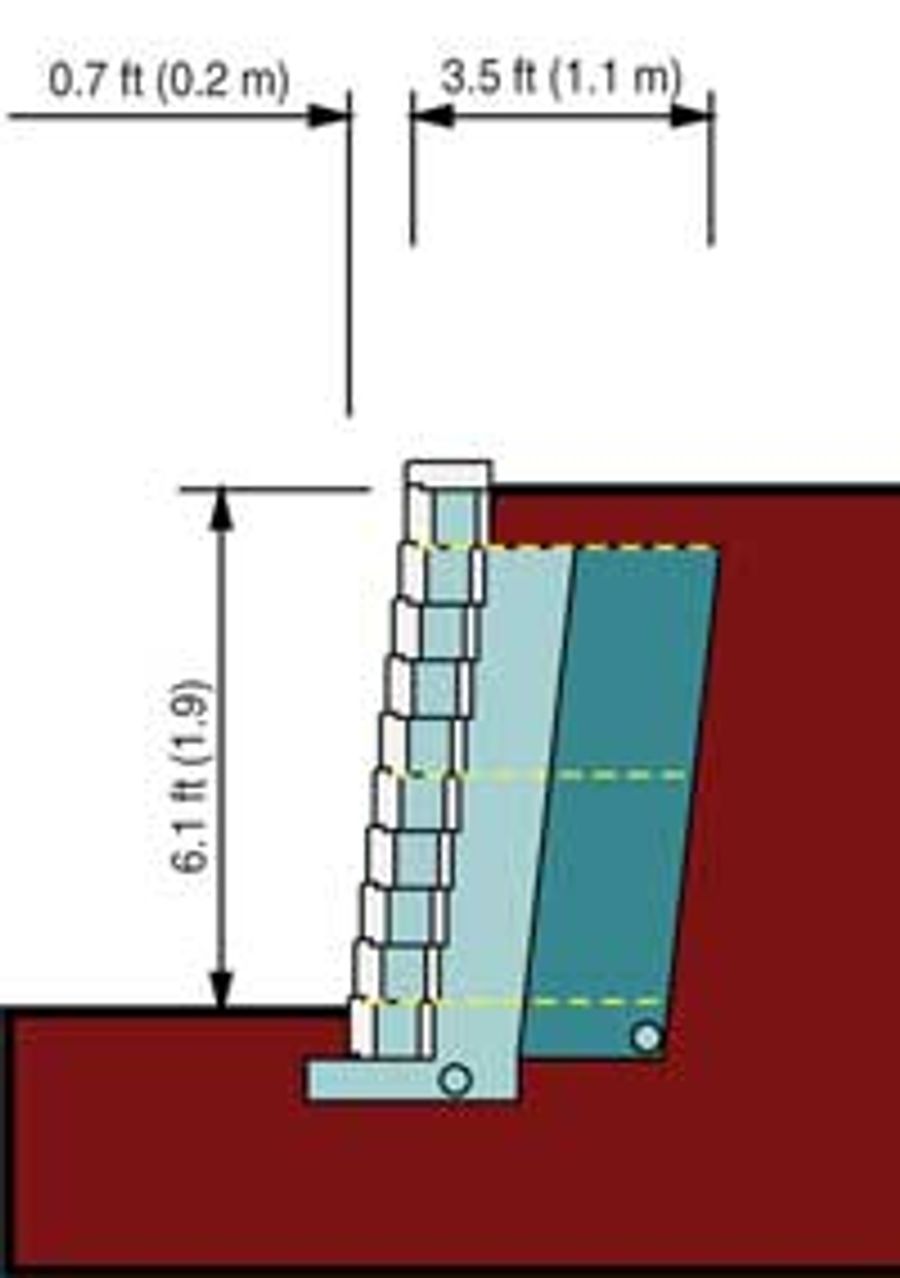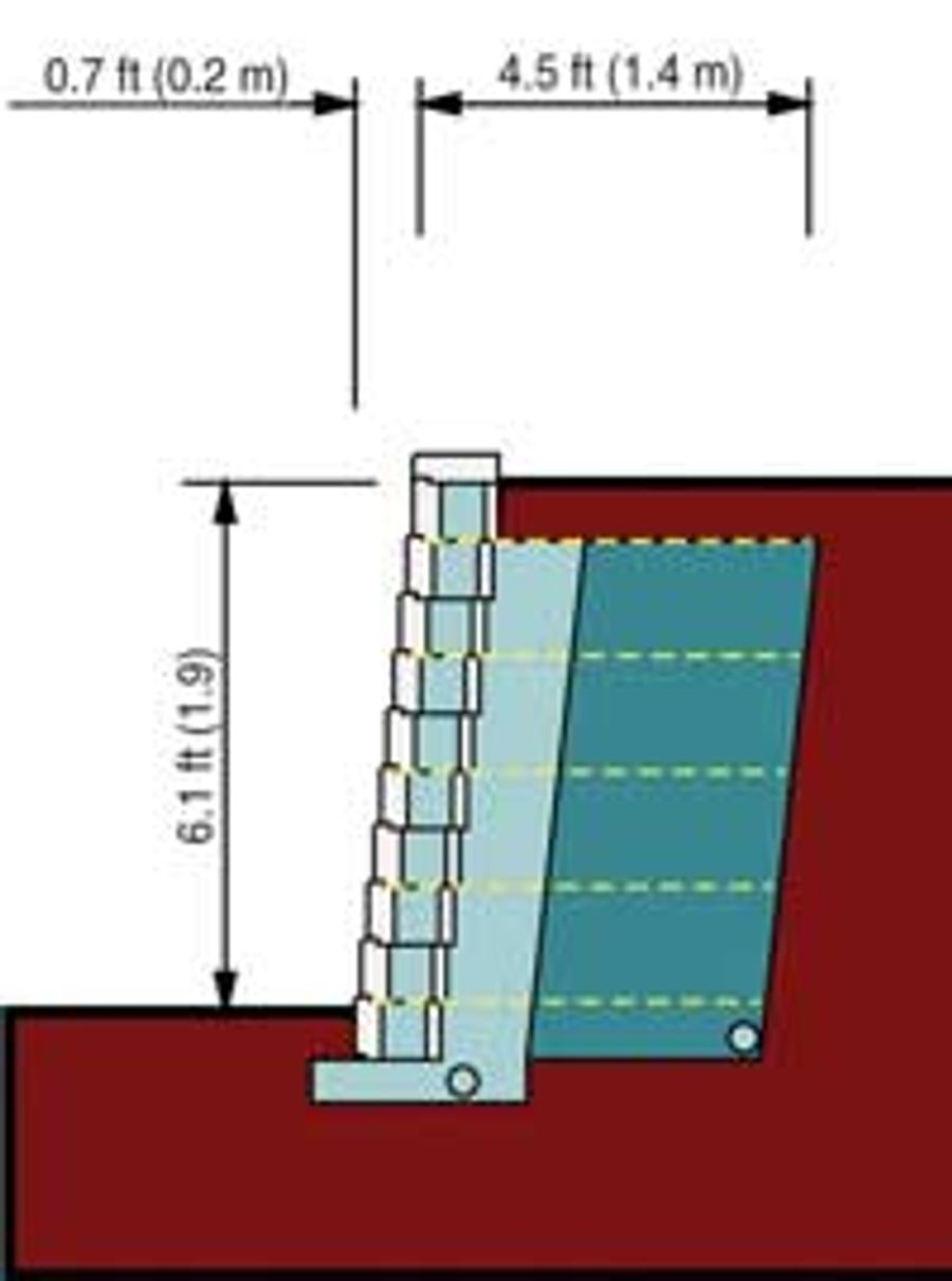 Full-scale testing conducted by Allan Block demonstrated the advantages of placing geogrid reinforcement at two-course (16 in / 400 mm) spacing. Closer spacing improves overall wall performance by: