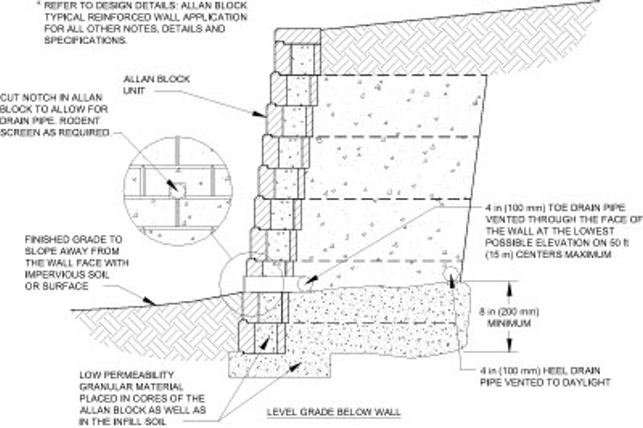 Walls are often constructed during dry seasons or winter, using gravel-based soils resistant to freezing and easily compactable. In some cases, an alternate base of impermeable granular material may be used to prevent water from ponding in lower wall sections.