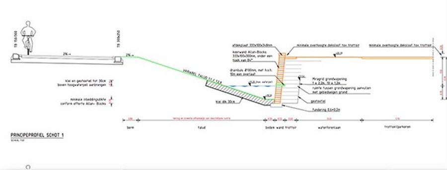 The original design of a retaining wall along the creek consisted of a prefabricated L-wall with traditional masonry in front of it. Due to budget problems, savings were necessary. By using a geogrid reinforced Allan Block retaining wall the cost savings was more than 40% of the initial design. The city of Hengelo did demand a masonry appearance, so the Allan Block Lite Stones again proved it was the perfect solution with its long, narrow brick like dimensions.