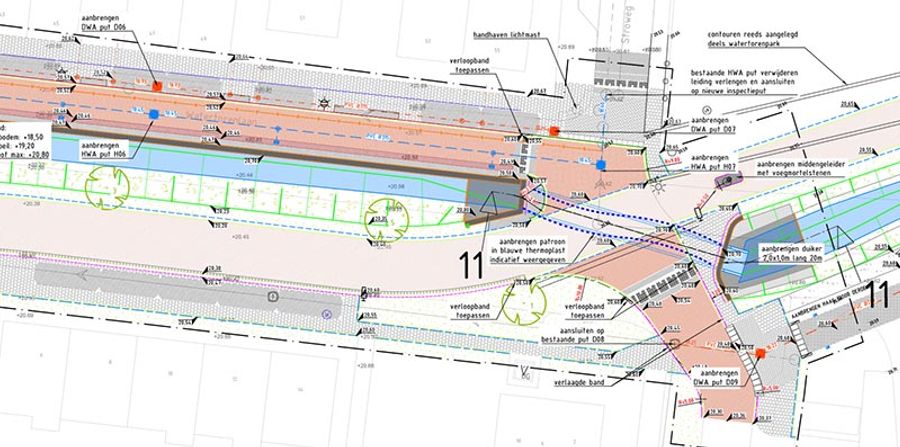 Hengelo, Netherlands, is a city of streams and creeks in the eastern part of the country where water is a factor to be considered in every construction project. The municipality of Hengelo, and the contractor, Dusseldorp, worked together as the construction team on the bicycle highway project F35 and the construction of the reconfigured Veldbeek Creek where the F35 leads to and through. Since the creek was now going to be rerouted above ground, pedestrian bridges were included to allow the residents to cross the water easily.