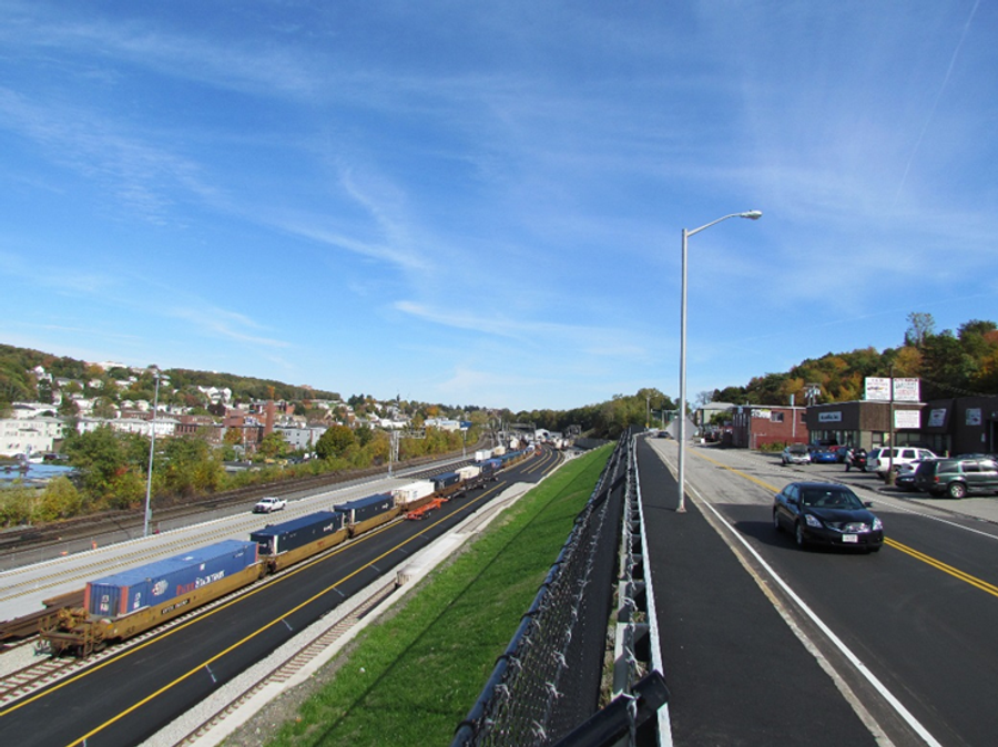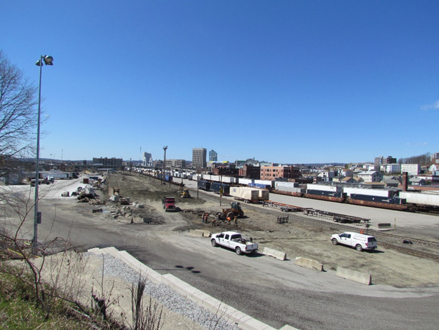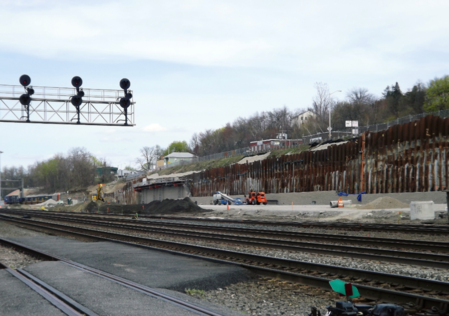 When CSX Intermodal Facility in downtown Worcester, MA needed to expand their property for new rail lines, multiple issues were encountered. With a local roadway at the top of the nearby hillside as well as utilities directly behind the proposed wall, this project presented numerous challenges to both the design and construction of the retaining wall. Incorporating the Allan Block segmental retaining wall system along with multiple reinforcement types would be investigated and applied to make this project an overall success.