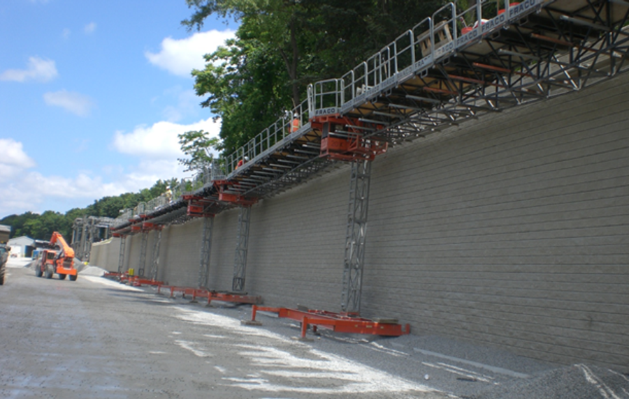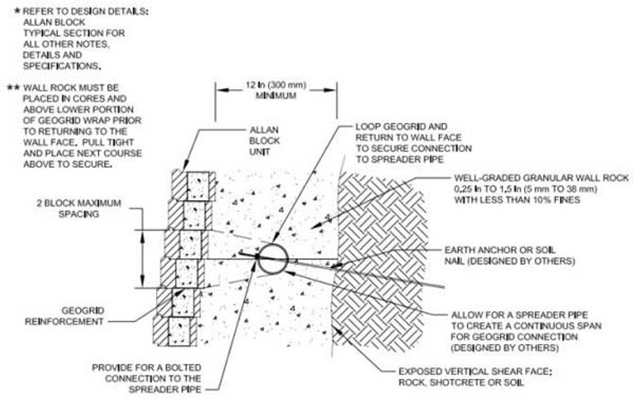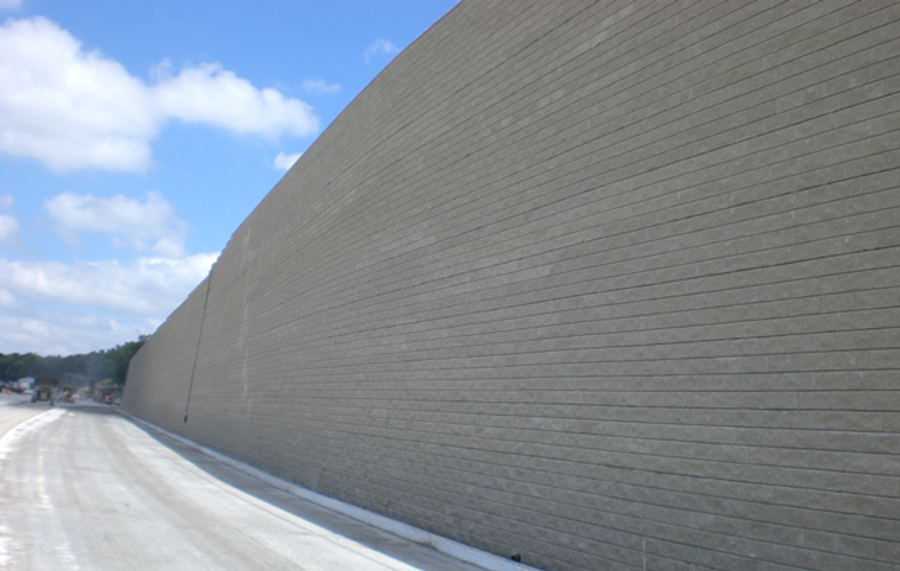 VSL who was already a certified wall contractor through the Allan Block contractor training course, won the project. As with any railroad project, timing plays a major role in its success and this project was no different. The retaining walls had to be constructed first before any rail expansion could start. With virtually no access from behind the wall for most of the project length, VLS utilized a mobile hydraulic lift to safely move material during construction. Using their well-trained installers, the innovative hydraulic lift system, and their well-earned experience they installed an average of 1200 Allan Block units per day, even through the non-geogrid reinforced areas. The final wall was nearly 1 mile long (1.6 km) with heights up to 35 feet (10 m) which accounted for over 110,000 ft² (10,200 m²) of wall.