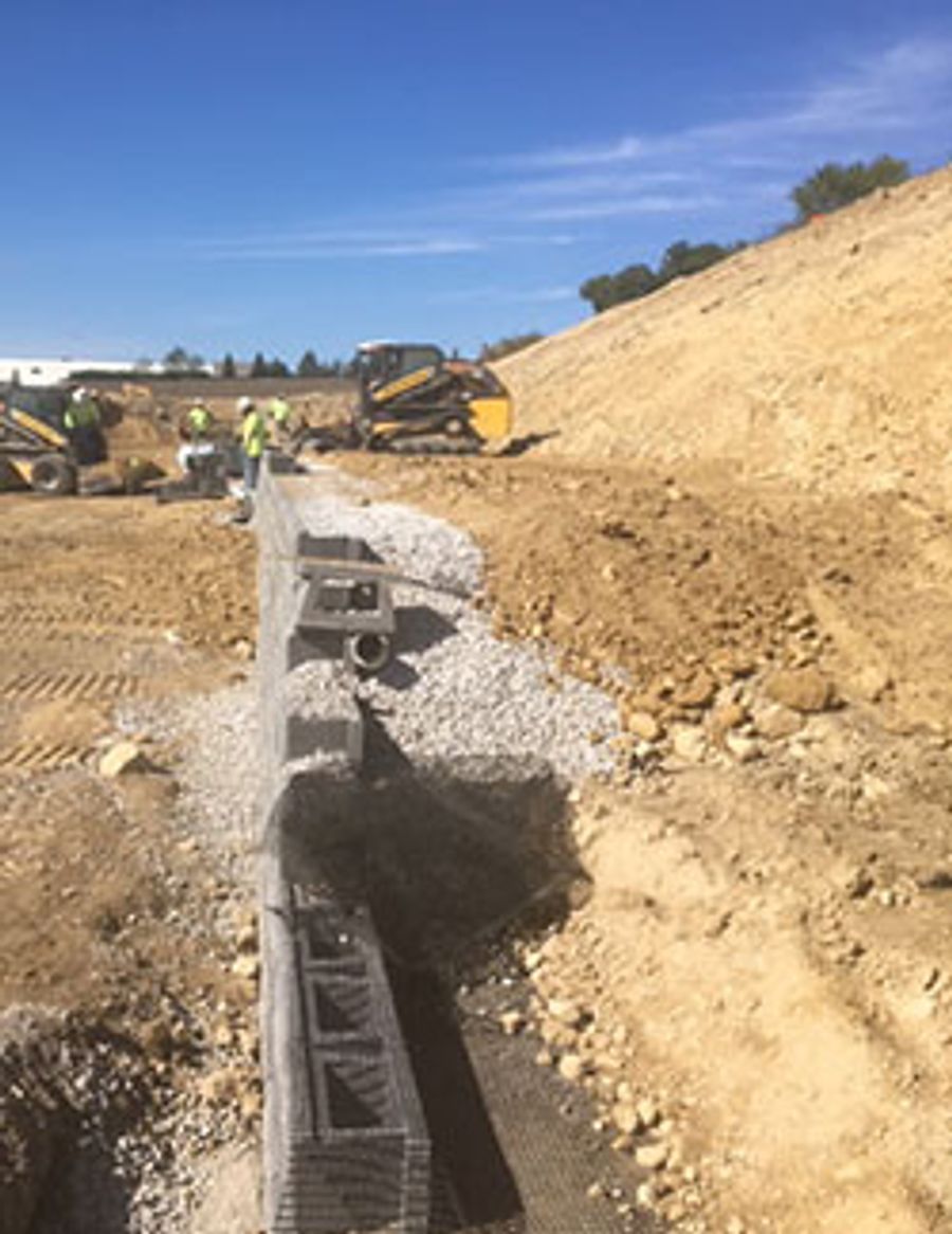 When CT Realty decided to develop a roughly 120-acre site in Romeoville, Illinois for a new Industrial Park, they had many site considerations. With most of the flat development sites in the area used up, CT Realty worked with Jacob & Hefner Associates to fit two 650,000 ft2 (60,000 m2) buildings on the site with over 100 ft of grade change across the property. As you can imagine, multiple retaining walls were required to provide the necessary parking and building area for the site.