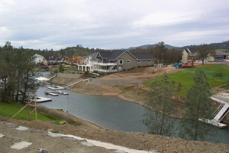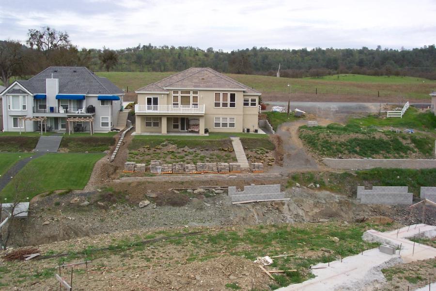 Peninsula Estates is the newest subdivision. It contains numerous houses under construction and even more lots to be developed. In one bay there will be at least seven Allan Block walls adorning the houses on both sides when construction is complete. The opposite side of the Lake has already seen plans for a minimum of five walls. Because Lake Tulloch allows all types of recreational activity, many people are able to view these walls; making it a great marketing tool for beauty, integrity and performance.