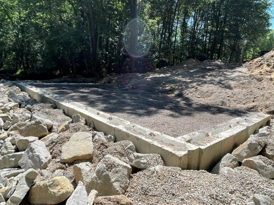 Segmental Retaining Walls (SRW) units have several advantages over a CMU especially with regards to durability and dimensional tolerances which was also a factor. Midland like most of the northern US, experiences harsh winters and the county needed a product that would last over the long term. Consumers Concrete was able to provide a block mix design already approved by Michigan DOT with the strength needed to survive the freeze/thaw cycles the state goes through annually and be repeatable to stack up and install evenly. Combined with Allan Block’s front lip that provides a guide to installers, the choice to use SRW units was a no-brainer. The ability to construct these types of structures quickly is so important to these rural areas since multiple access roads are limited.