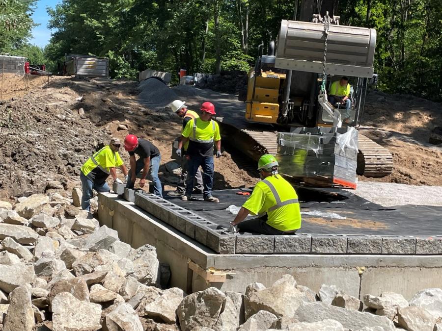 Once the plans were finalized it was turned over to the crew at Midland County Road Commission who had just completed AB Contractor Certification Training. In fact, this was the first SRW project they had worked on, allowing them to complete their first level of certification. The choices made by the design team allowed the construction of the abutments with minimal delays. No time was lost dewatering the foundation because of the tongue and groove concrete pad. Construction on the abutments began the second week of June and was completed before the end of the month. Art Buck with the Midland County Road Commission even commented, "We put these projects off for years, but this ended up being a very smooth project." He added, "Allan Block helped us with an effective solution we could construct with the crew we had. It keeps the line well with the built-in front lip and provides an upgraded aesthetic when compared to CMU blocks."