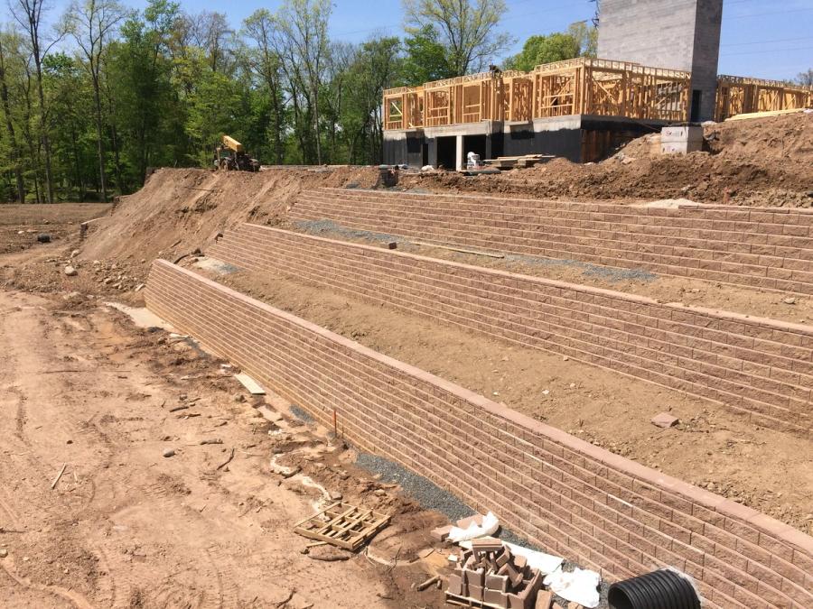 Because of the complexity of the retaining walls on site, hiring a highly qualified engineer with retaining wall experience was a top priority. Robert Sive from Geller Sive and Company out of Farmingdale, NJ, was hired on as the designing engineer thanks to his wall design experience. A 25 ft (8 m) tall waterfall running between two terraced retaining walls and water applications are each complex applications on their own, but for this project, Robert needed to design for all three.
