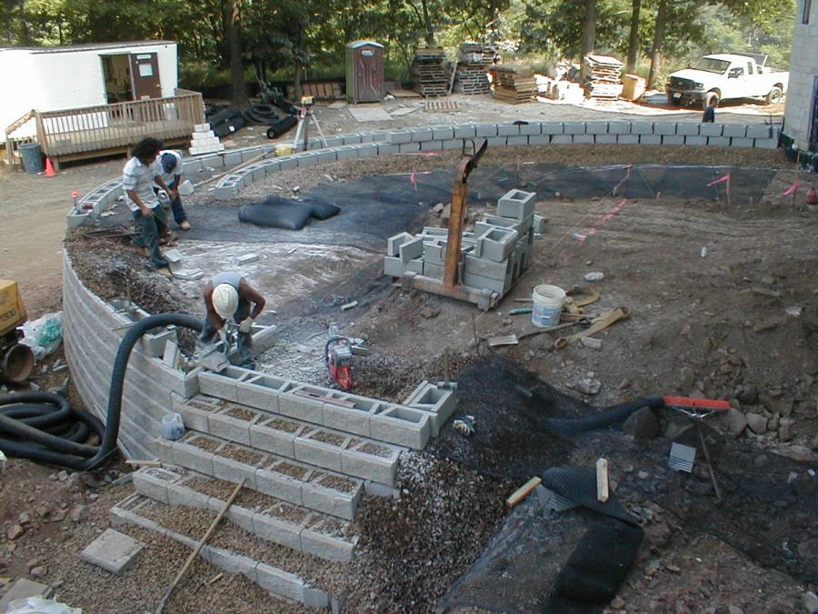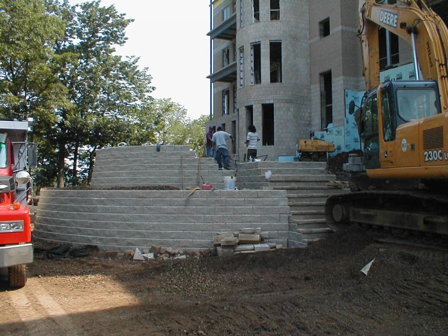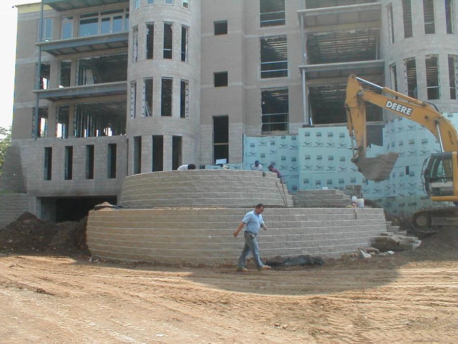 Pillari, LLC, an Allan Block certified wall installer, was contracted to build the walls. They are a large construction company with the manpower and equipment to handle a project of this magnitude. They worked directly with Porcello for the wall construction, but because of the integration of the walls into the building plans, coordination with all disciplines was mandatory. The project owners and designers called for a preconstruction meeting to get the project started in the right direction and weekly site meetings to ensure the project went smoothly and stayed on schedule.