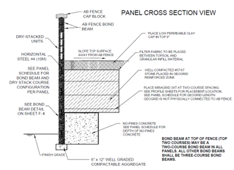 In addition to the use of NFC and geogrid, other unique characteristics to this design when compared to a traditional AB Fence included: