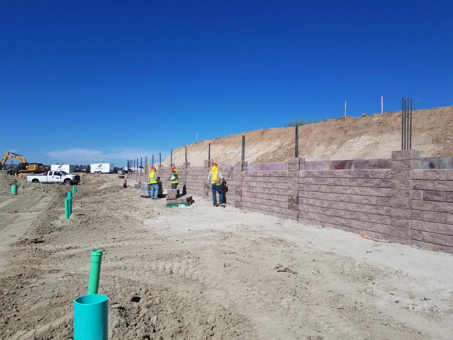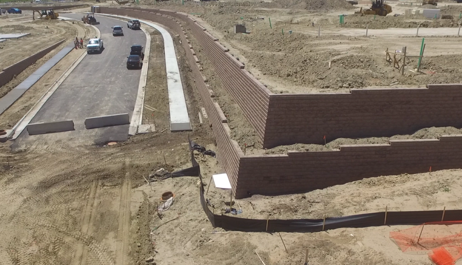Slaton Brothers hired SK Wall Design to complete the engineering for all walls onsite. Together, they were tasked with using their knowledge of various site solutions to solve the many challenges present at the Springs at Eagle Bend. Both were up for the challenge and the result was a perfect blend of AB Classics for the retaining walls and AB Fence for the noise abatement AND retaining wall portion.