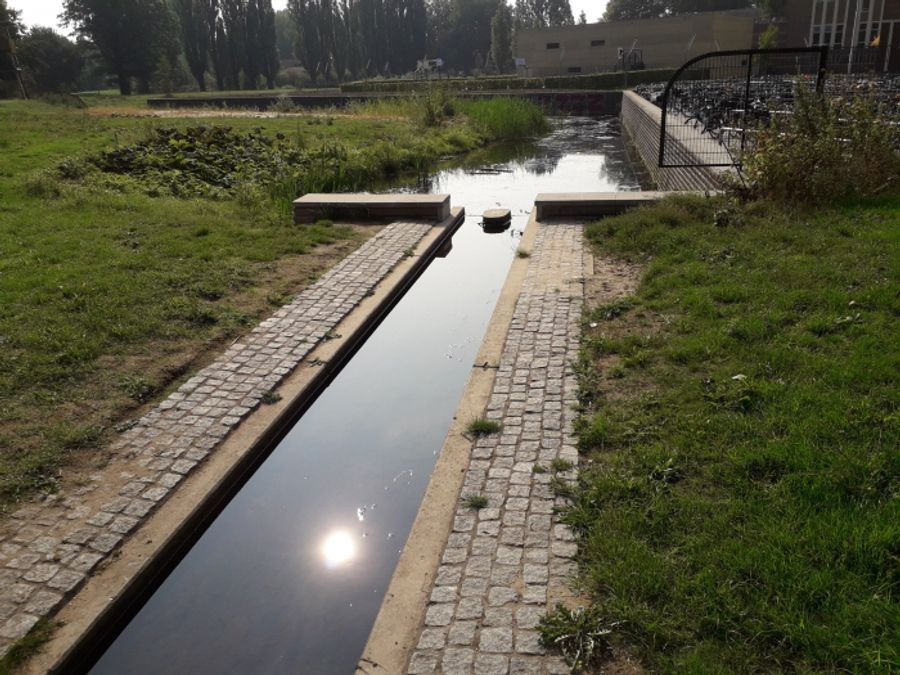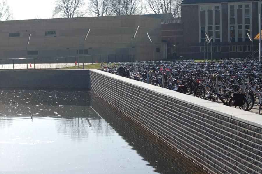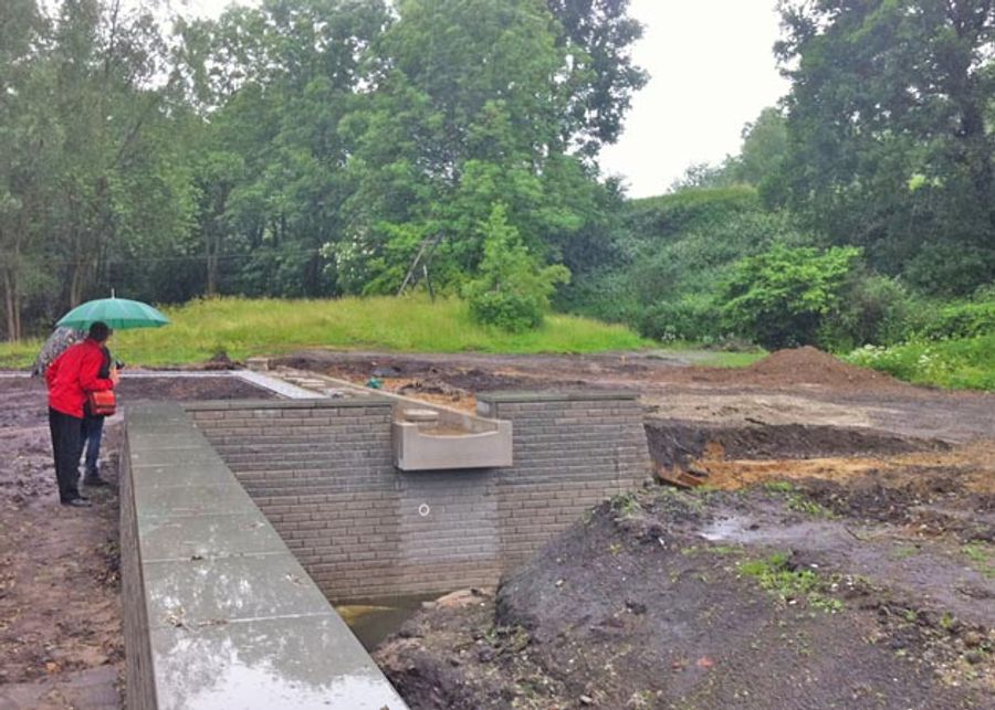 A very unique feature was the Molenbeek Creek, which runs partly underground through an old clay brick culvert and becomes exposed above ground near the start of new Thialf Park. The underground portion effected the watershed greatly due to its lack of volume. The above ground portion needed to be increased to control the water levels and periodic localized flooding. By designing an Allan Block water application retaining wall, a detention basin was created, and the site’s water levels could now be controlled with an integrated weir and overflow. The designers used the AB Lite Stones product by Allan Block along with the integrated concrete overflow waterfall as part of the esthetic beauty in the finished park. The new Molenbeek Creek above ground portion now contributes to making the city of Arnhem more resilient to common flooding of the past.
