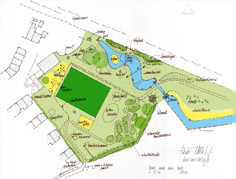The project is located in an interesting plot of land. The terrain is a combination of sandy soils in the local hillsides and clay soil from the sedimentary deposits from the two nearby rivers, Ijssel and Rhine. These sedimentary layers were visible due to the roughly 8.2 ft (2.5 m) of grade change across the site. Additional site characteristics were a vast array of plant life, varying water levels and a mix of wet and dry soils that needed to be redeveloped.