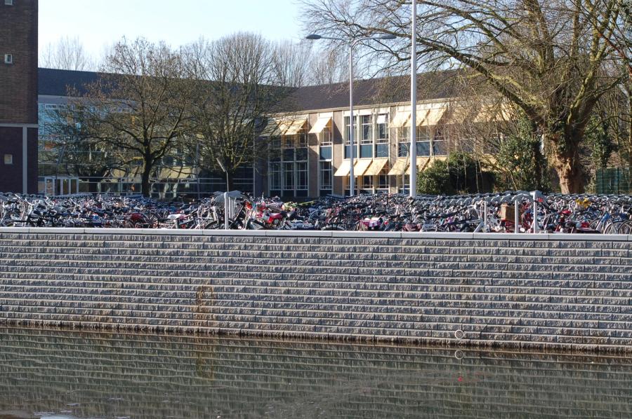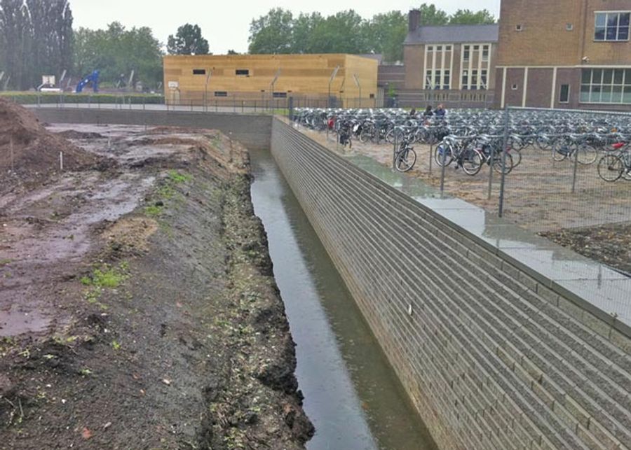 One of the other reasons this site was chosen for redevelopment by the community was the soil contamination present from past industrial use. Careful consideration was taken by the designers to identify the contaminants and worked with the city for its remediation. It was determined that approximately 13,000 m3 (17,000 yd3) of soil was contaminated. The client, the Municipality of Arnhem, wanted to treat and reuse the contaminated soil as much as possible in a safe way as a cost saving measure. By using the Allan Block geogrid reinforced retaining wall in combination with a suitable PVA geogrids from Huesker Geosynthetics, it was possible to safely contain the contaminated soils behind the retaining wall, accommodate the Municipality of Arnhem requirements and provide a huge cost savings.