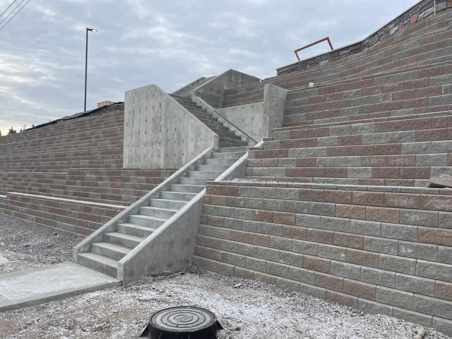 Dave Reynolds with Alpine Landscaping was key to this project. This project faced a number of challenges during the course of the construction process but Dave was able to use his experience and perseverance to meet each challenge and overcome them. A major problem that affected this project was Mother Nature. A snowstorm hit after the excavation had been completed, which got compacted into the excavated area and delayed the construction. Another challenge he encountered was the cast-in-place stairs needed to be included in the middle of the terraced wall. This necessitated a call to the AB Engineering team who were able to work with him to answer his questions and assist with installation inquiries.